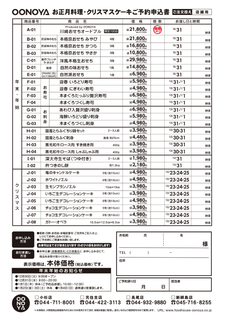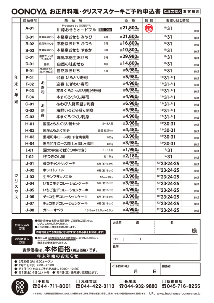 • 年末年始おせち・クリスマスケーキの御予約承り中